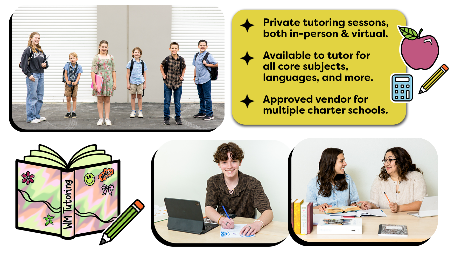 WM Tutoring was born out of both my personal experiences and the experiences I have had with my kids. With that, I want to motivate other children to do well in any areas where they struggle and help create good, long-lasting habits which will allow them to thrive all the way into adulthood.